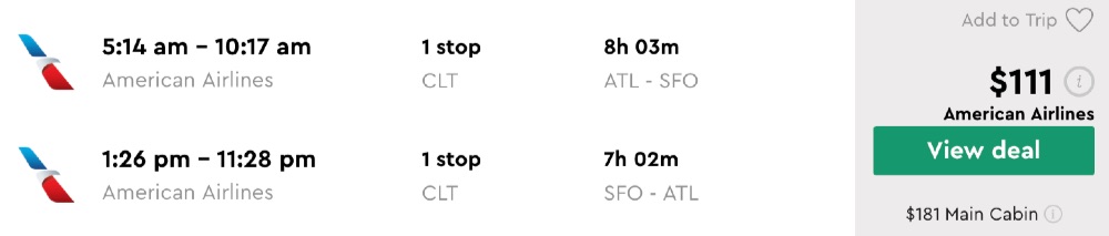AA! Atlanta – San Francisco and vice versa for $111 round-trip
