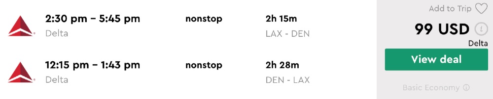 Nonstop via Delta! New York, Los Angeles, Seattle to Denver and vice versa from $99 round-trip