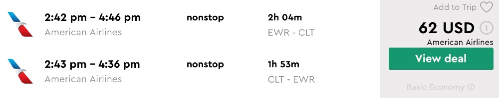 Amazing deal: Newark or Philadelphia to Charlotte and vice versa flight roundtrip as low as $60.