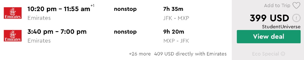 Nonstop via Emirates! New York to Milan, Italy from $399 round-trip