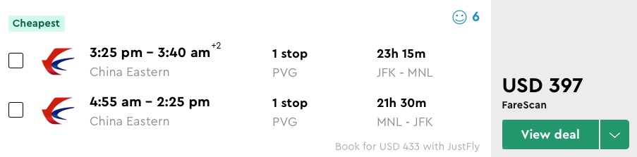 Amazing deal: New York, Los Angeles, San Francisco to Manila, Philippines flight roundtrip as low as $365.
