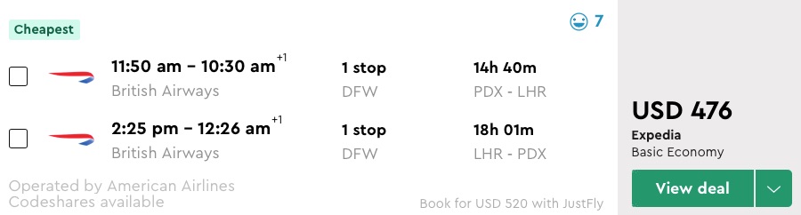 Amazing deal: Portland – London, UK flight round-trip as low as $476.