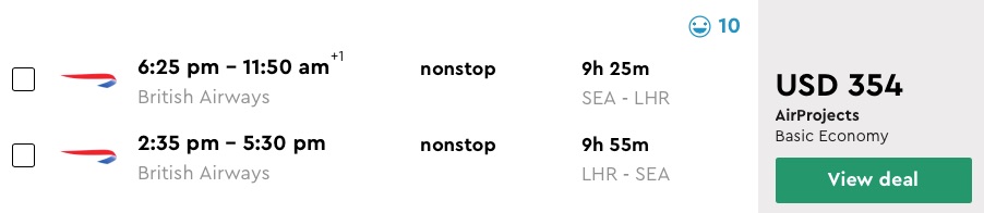 Amazing deal: Los Angeles, San Francisco, Seattle – London, UK flight round-trip as low as $354.