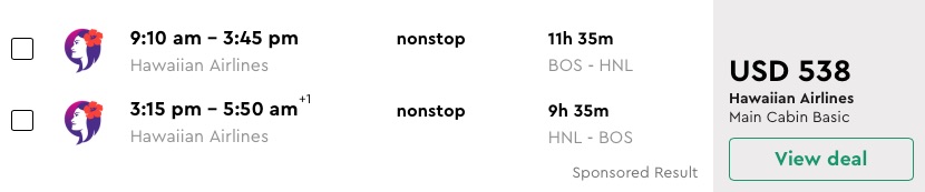 Amazing deal: Boston to Hawaii: Honolulu and vice versa flight round-trip as low as $538.