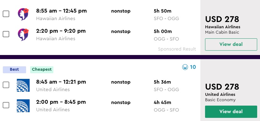 Amazing deal: San Francisco – Hawaii: Oahu or Maui and vice versa flight round-trip as low as $278.