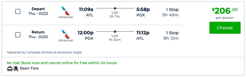 Amazing deal: Atlanta to Portland, OR and v/versa flight round-trip as low as $206.