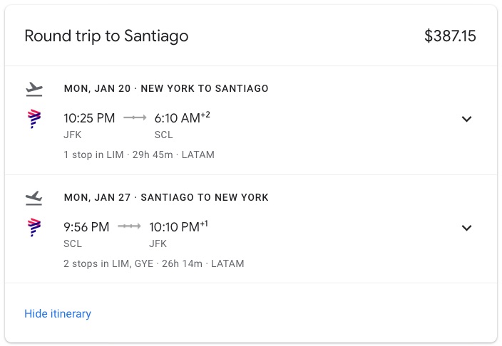 Amazing deal: New York – Santiago, Chile flights round-trip as low as $387.