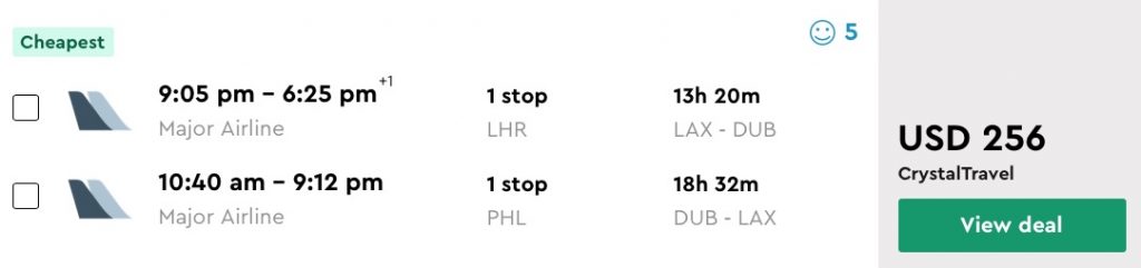 Los Angeles to Dublin, Ireland from $256 round-trip