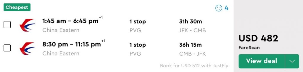 Amazing deal: New York to Sri Lanka flight roundtrip as low as $482.