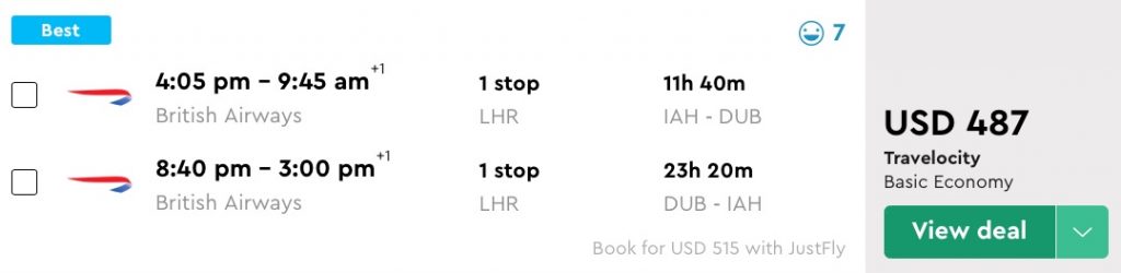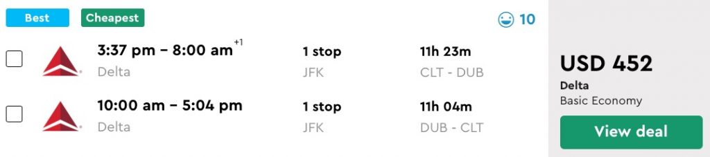 Amazing deal:CLT, DFW, IAH, DEN, MIA, PHX, LAX, SEA to Dublin, Ireland flights round-trip as low as $289.