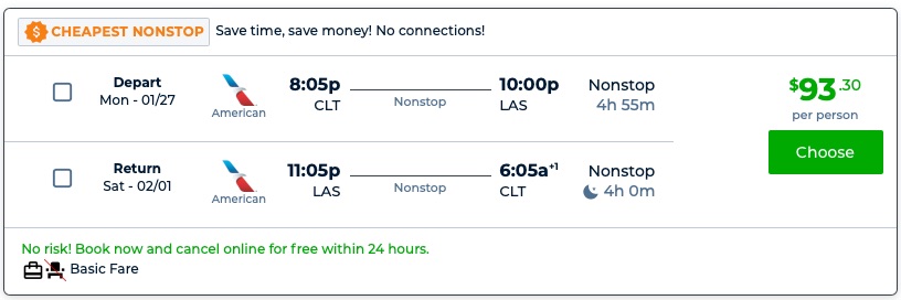 Amazing deal: Charlotte to Las Vegas and v/versa flight round-trip as low as $93.
