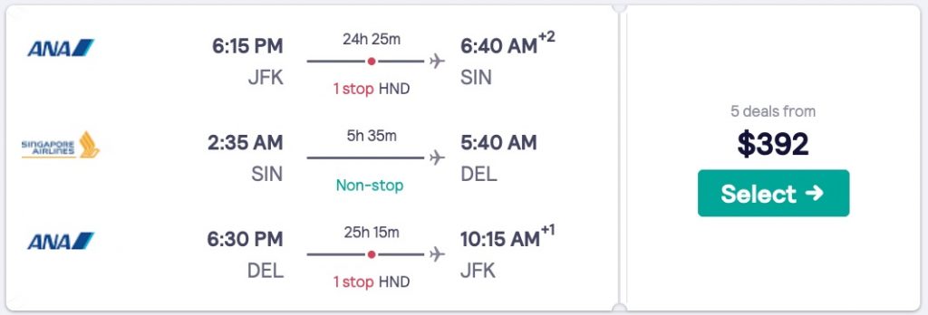 Amazing deal: New York to Singapore and India flight roundtrip as low as $392.