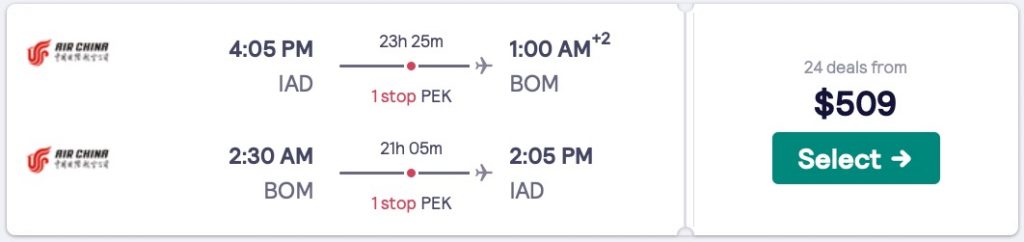 Amazing deal: New York, Washington DC, San Francisco to Mumbai, India flight round-trip as low as $455.