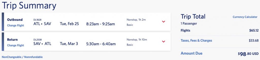 Atlanta, GA to Savannah, GA Travel Period starts 02/26/2020 and ends 03/03/2020