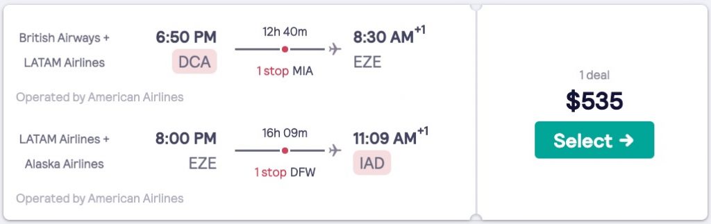 Amazing deal: Washington DC, San Francisco, Denver, Houston – Buenos Aires, Argentina flights round-trip as low as $535.