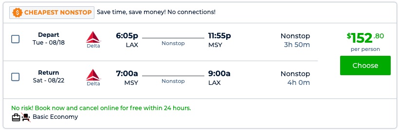 Amazing deal: Los Angeles to New Orleans and v/versa flight, round-trip as low as $152.