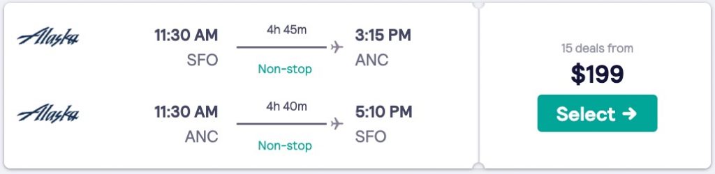 Amazing deal: San Francisco to Anchorage, Alaska and v/versa flight round-trip as low as $199.