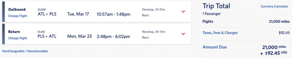 Atlanta, GA to Providenciales, Turks and Caicos Travel Period starts 03/17/2020 and ends 03/23/2020