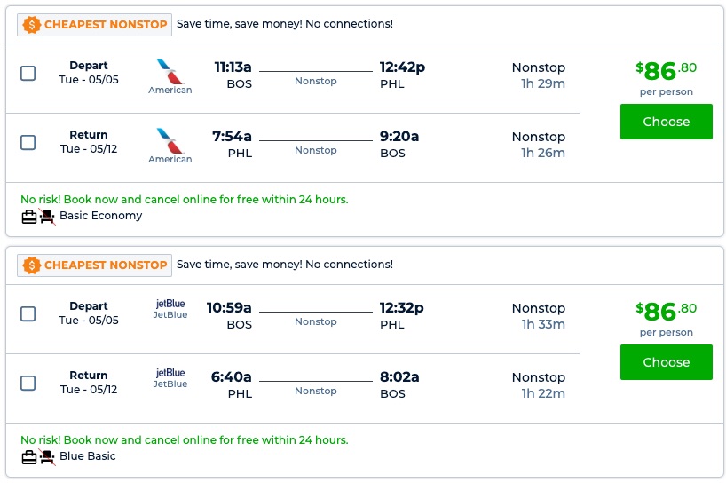Amazing deal: Boston to Philadelphia and v/versa flight roundtrip as low as $86.