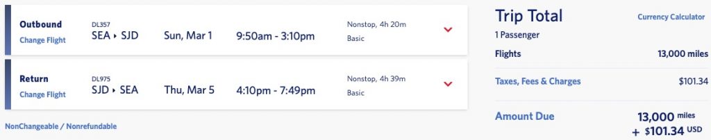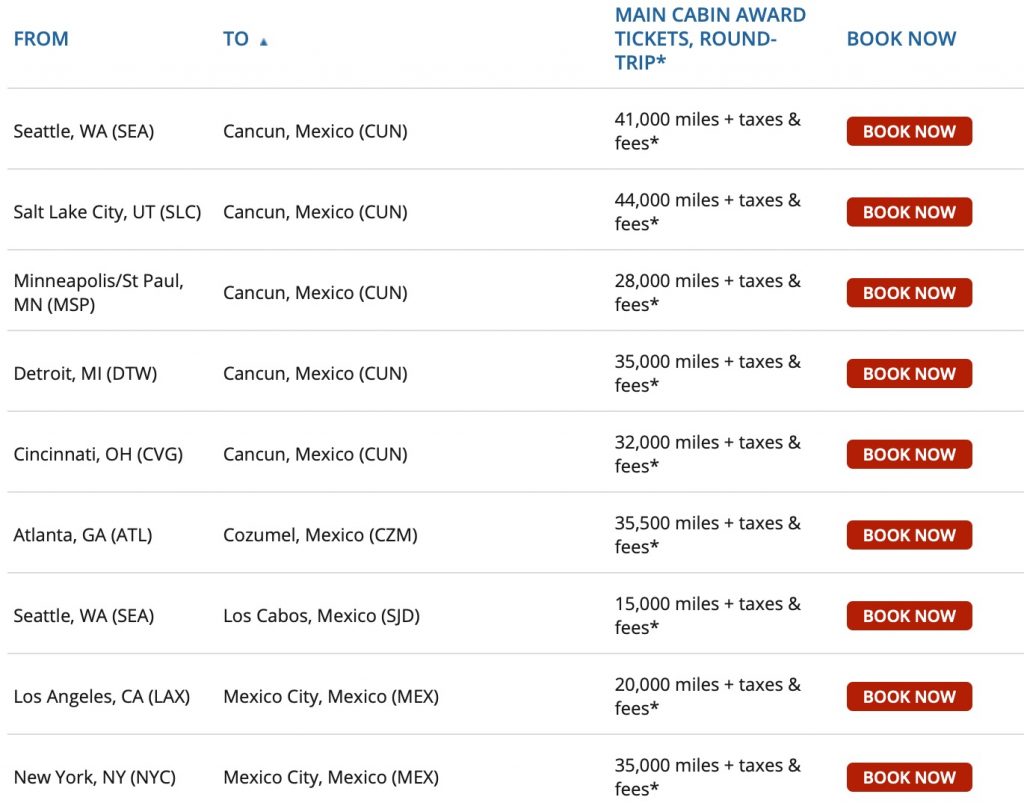 Amazing award travel deals via Delta — round-trip flights to Mexico from 13000 miles.