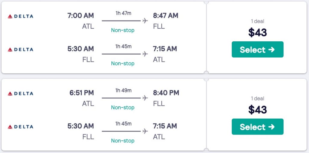 Amazing deal: Atlanta to Fort Lauderdale, Florida and vice versa flight, round-trip as low as $43.