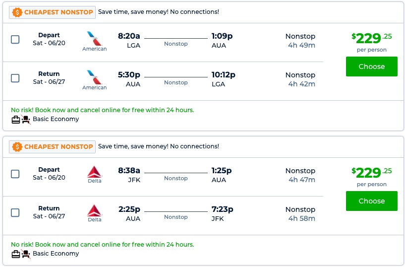 Early summer! Nonstop via AA/Delta! New York to Aruba for $230 R/T