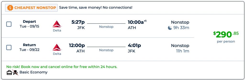 Aug-Sep! Nonstop via Delta! New York to Athens, Greece for $290 R/T