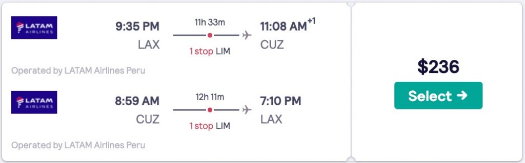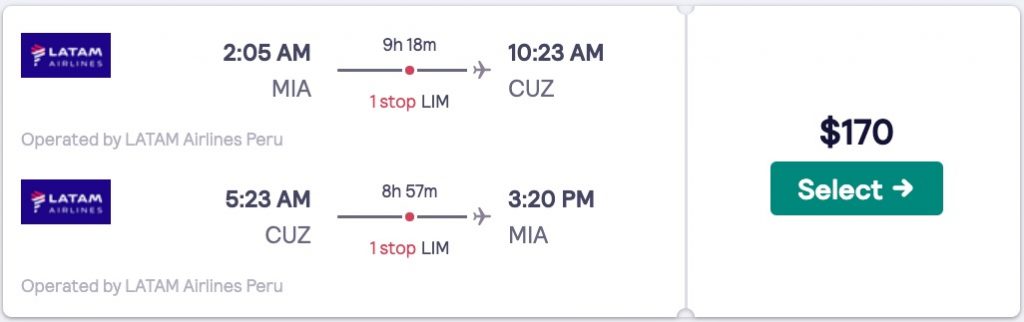 Amazing deal: New York, Miami, Los Angeles to Cusco, Peru (gateway to Machu Picchu) flights roundtrip for as low as $170.