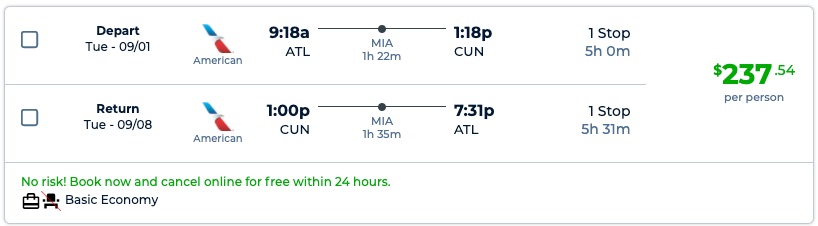 Late Summer, Thanksgiving, Xmas, NYE, 2021! Atlanta to Cancun, Mexico for $237 R/T