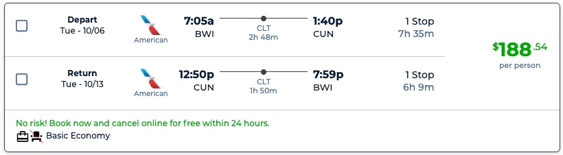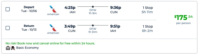 Amazing deal: Houston and Baltimore to Cancun, Mexico flight round-trip as low as $175.