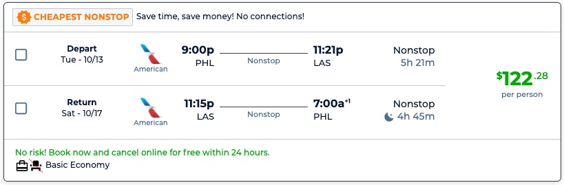 Late Summer – Fall! Nonstop via AA! Philadelphia to Las Vegas or Los Angeles and v/versa from $122 R/T