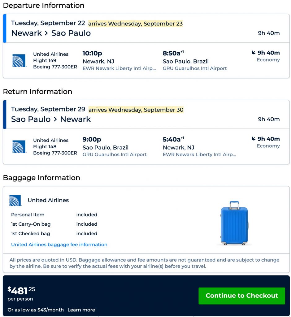 Amazing deal: New York (EWR) to Sao Paulo, Brazil flight, round-trip as low as $481.