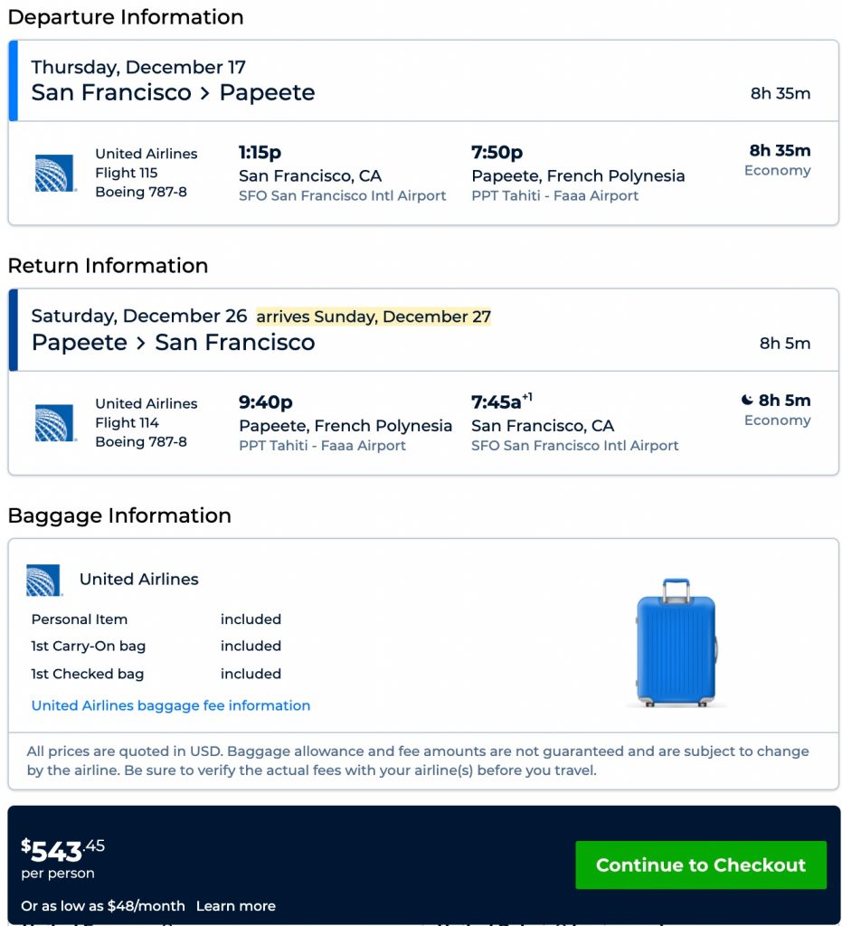 Amazing deal: San Francisco to Tahiti, French Polynesia flight round-trip as low as $543.