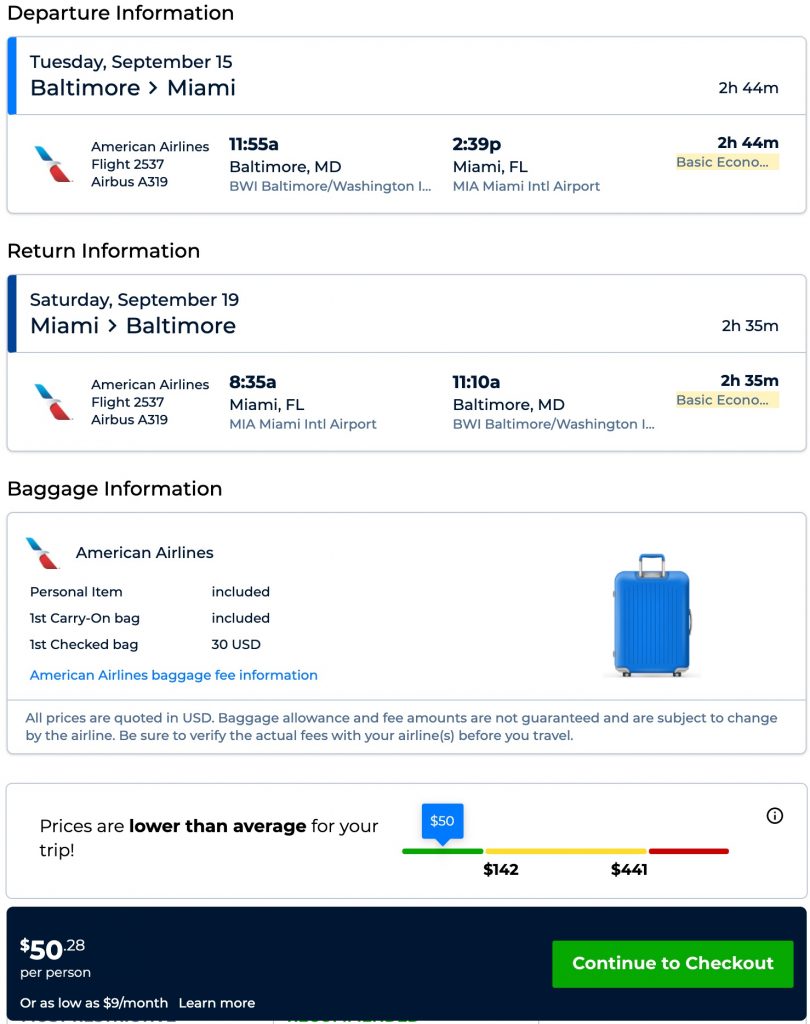 Amazing deal: Baltimore to Miami and vice versa flight roundtrip as low as $50.