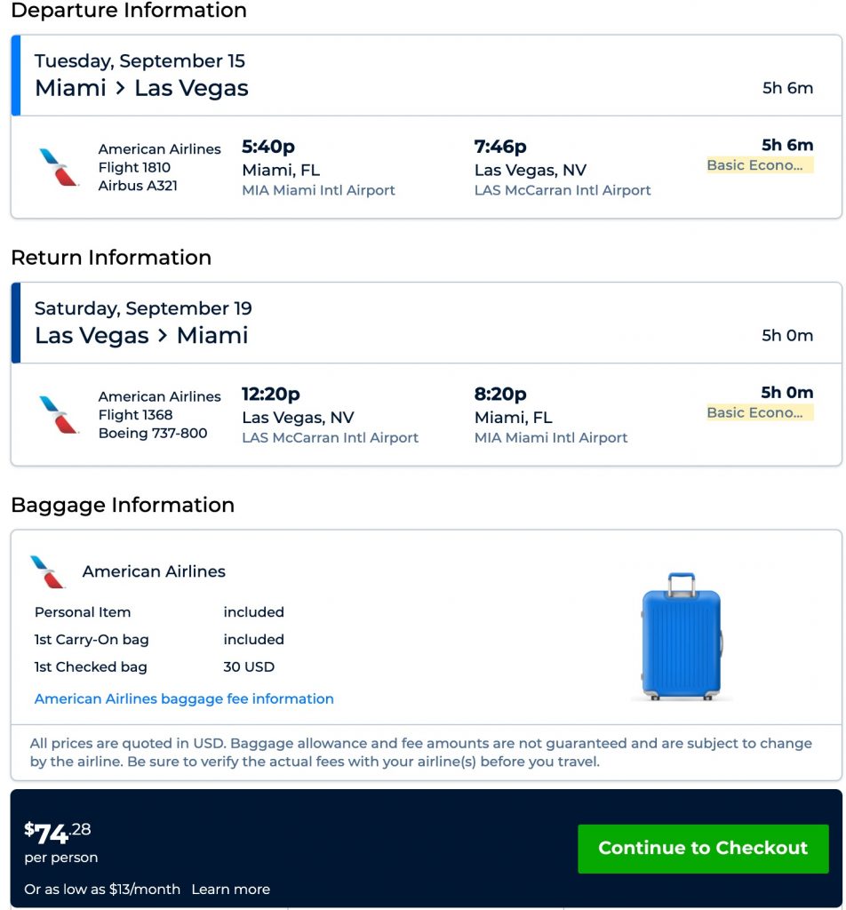 Amazing deal: Miami or Philadelphia to Las Vegas and vice versa flights round-trip as low as $75.