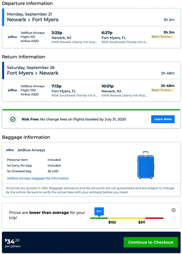 Amazing deal: New York (EWR) to Fort Myers, FL and vice versa flight roundtrip as low as $34.