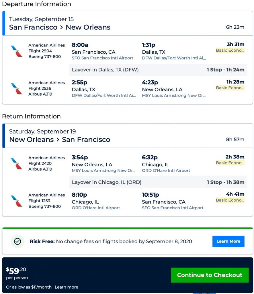 Amazing deal: San Francisco  to New Orleans and vice versa flight, round-trip as low as $59.