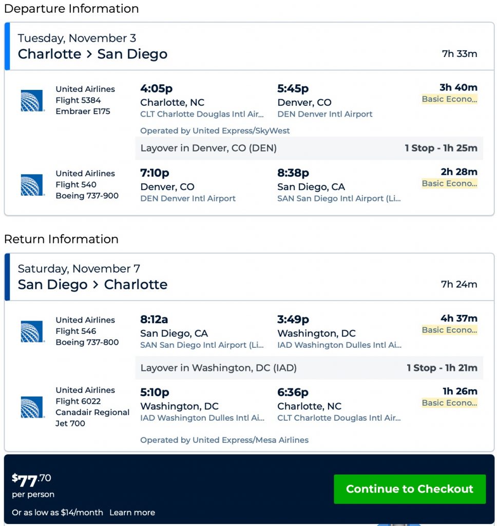 Amazing deal: Charlotte to San Diego and vice versa flight roundtrip as low as $78.