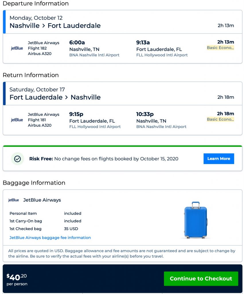 Amazing deal: Nashville or Raleigh to Fort Lauderdale and vice versa flight roundtrip as low as $40.