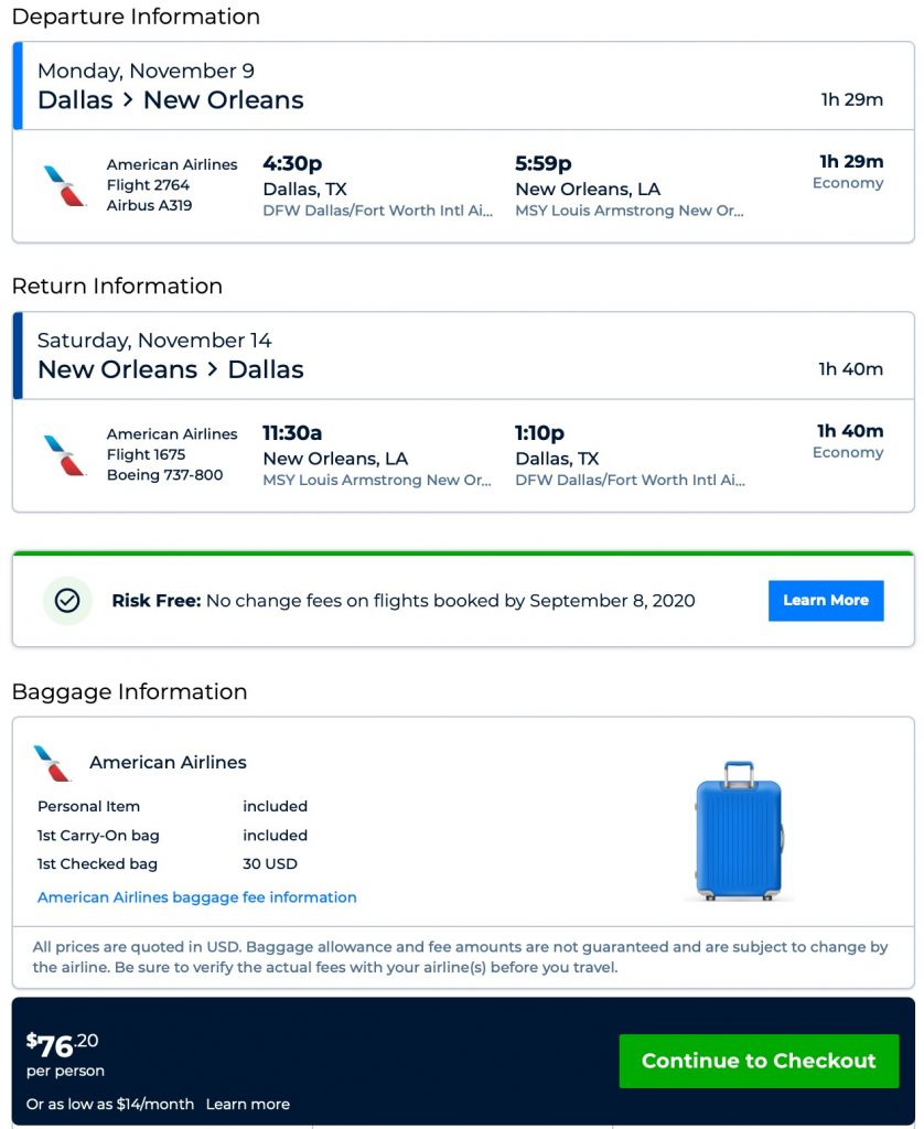 Amazing deal: Dallas to New Orleans and v/versa flights roundtrip as low as $76.