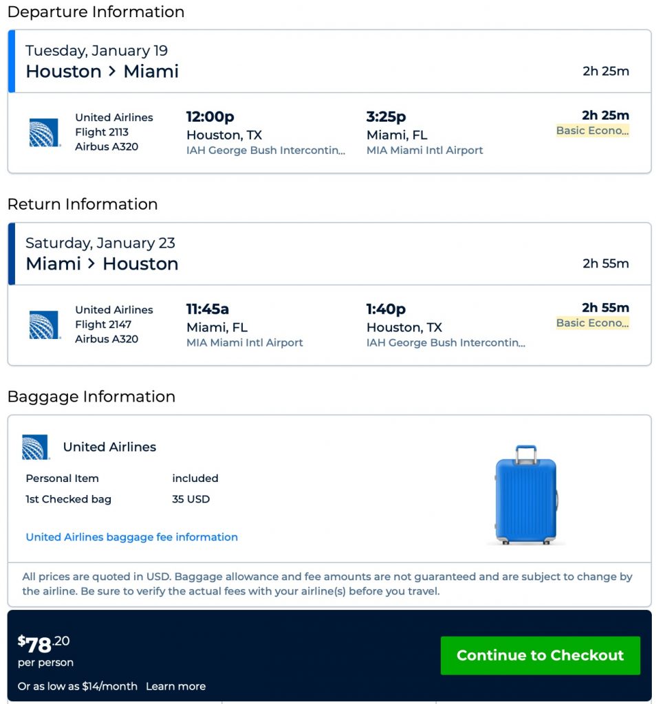 Amazing deal: Houston to Los Angeles, New York (EWR) or Miami and vice versa flight roundtrip as low as $74.