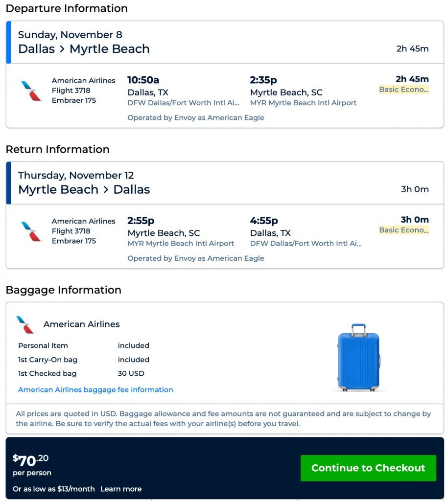Amazing deal: Dallas to Myrtle Beach, SC and vice versa flight roundtrip as low as $70.