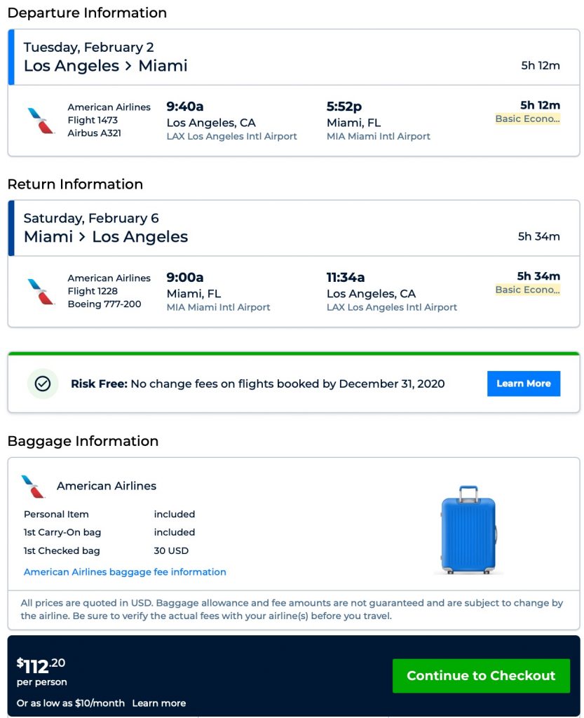 Amazing deal: Los Angeles to Miami and v/versa flight roundtrip as low as $112.