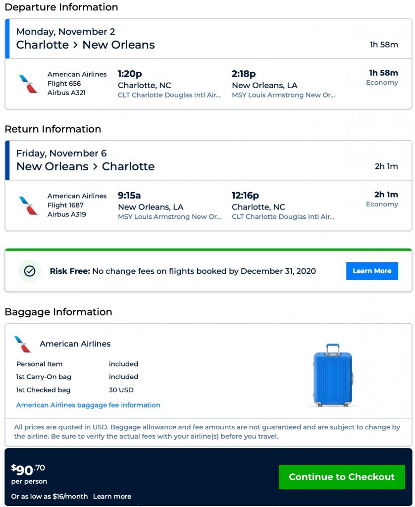 Amazing deal: Charlotte to New Orleans and v/versa flight round-trip as low as $90.