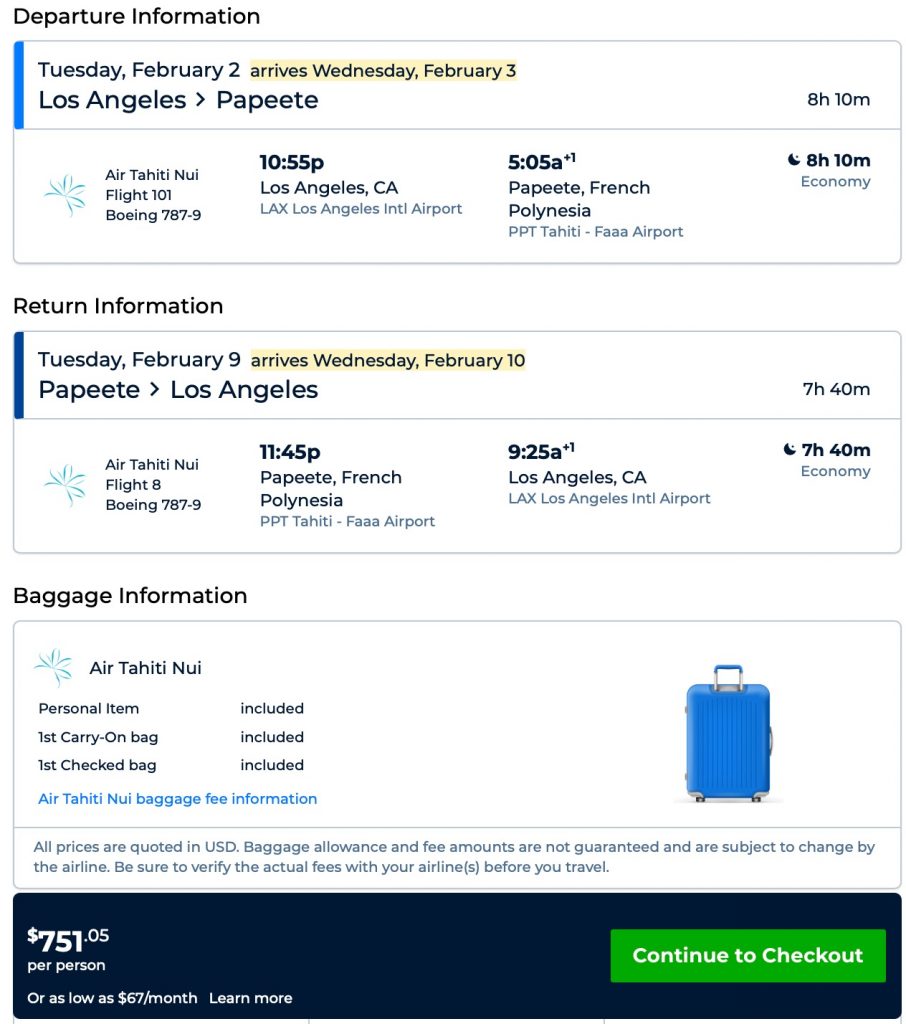 2021, nonstop! Los Angeles to Tahiti, French Polynesia for $751 R/T