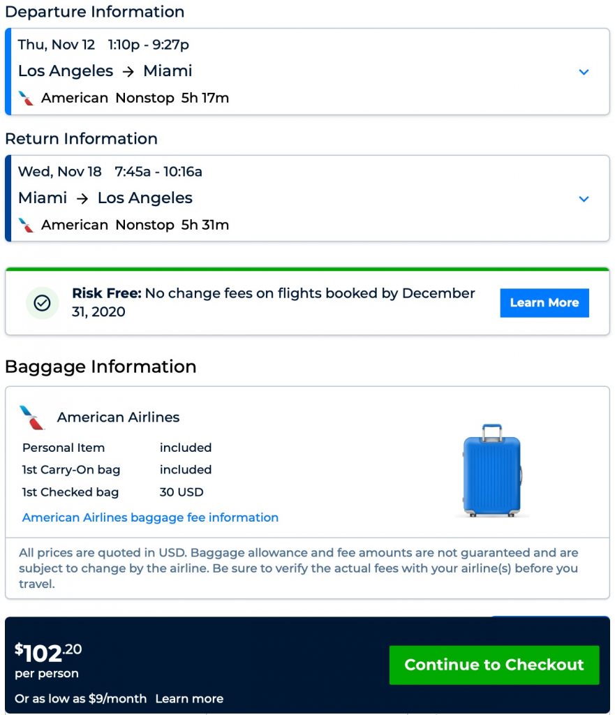 Amazing deal: Los Angeles to Miami and v/versa flight roundtrip as low as $102.