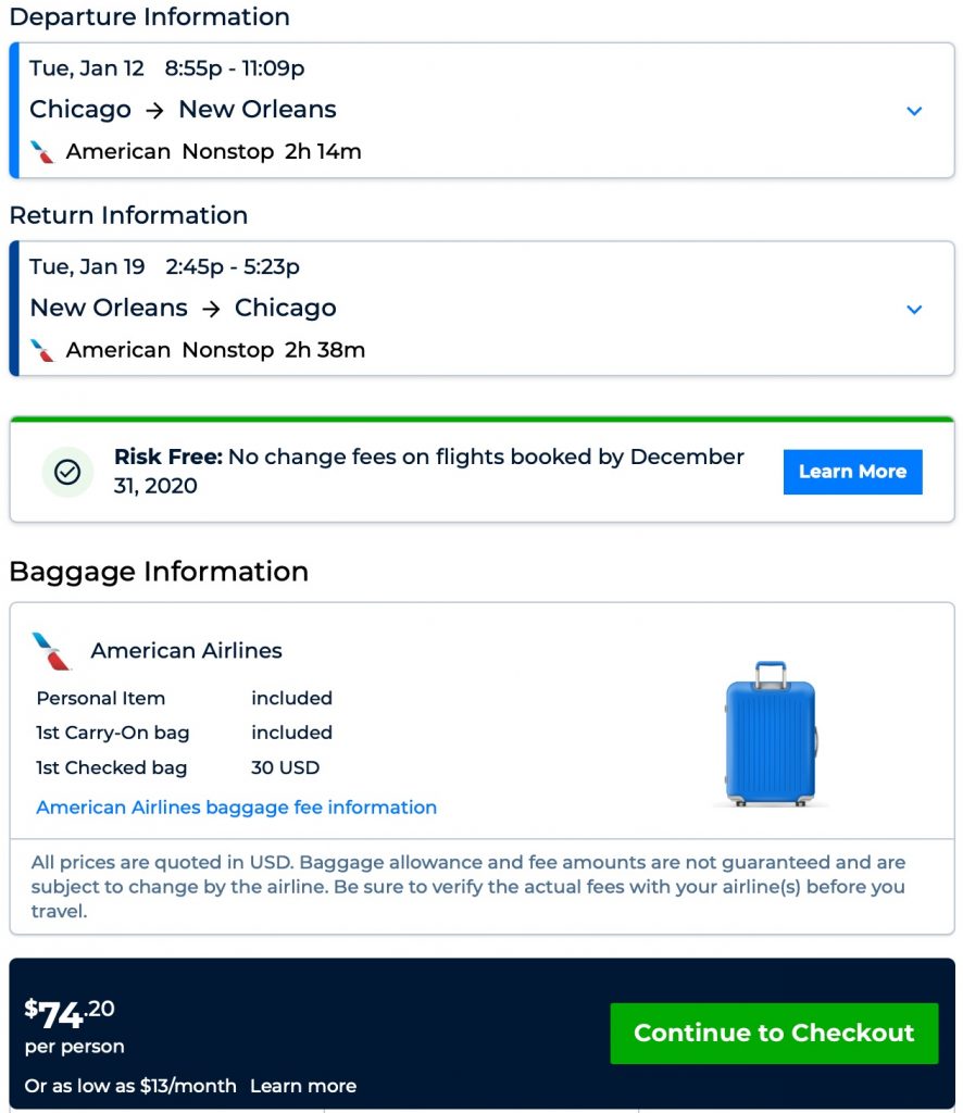 Amazing deal: Chicago to New Orleans and v/versa flight round-trip as low as $74.