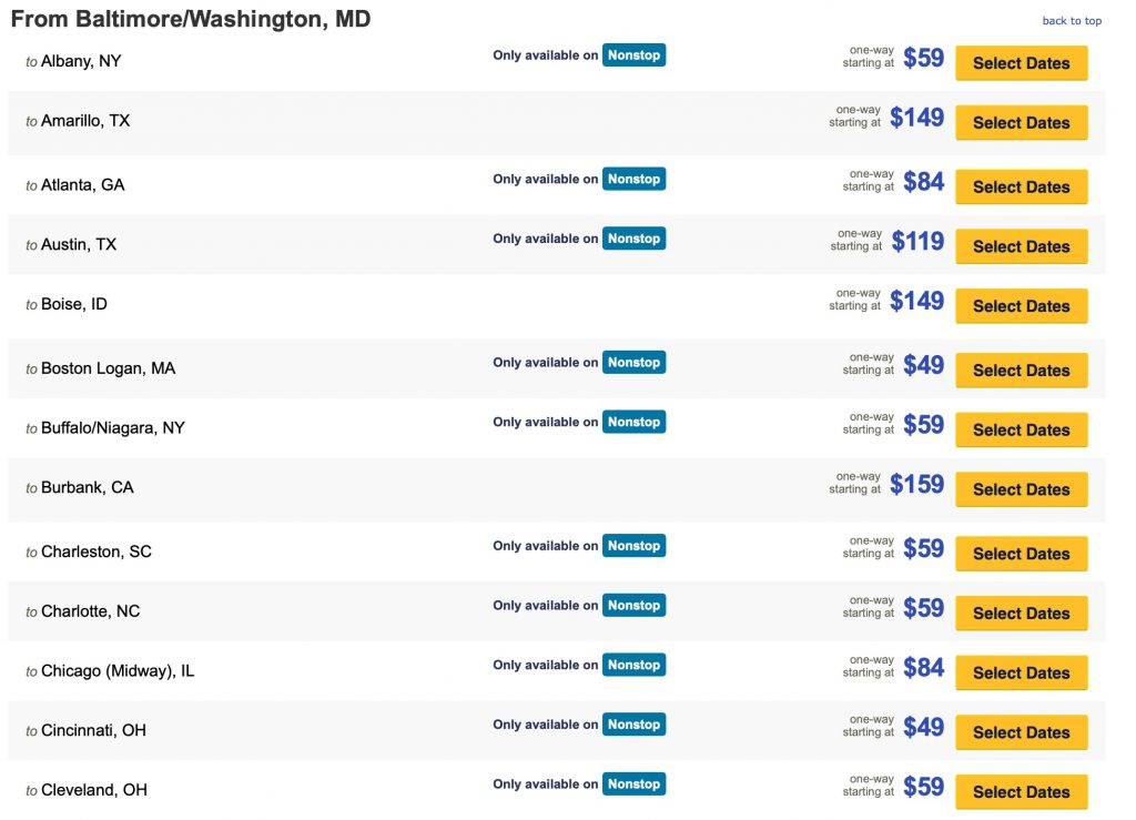 Nonrefundable. Seats, travel days, and markets limited. Blackout dates apply. Fares valid on nonstop service where indicated; if not indicated, fares are valid on single connecting service.