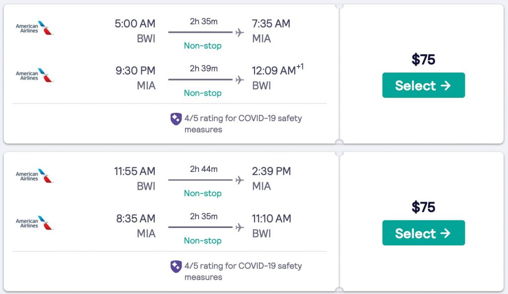 Amazing deal: Baltimore to Miami and v/versa flight round-trip as low as $75.