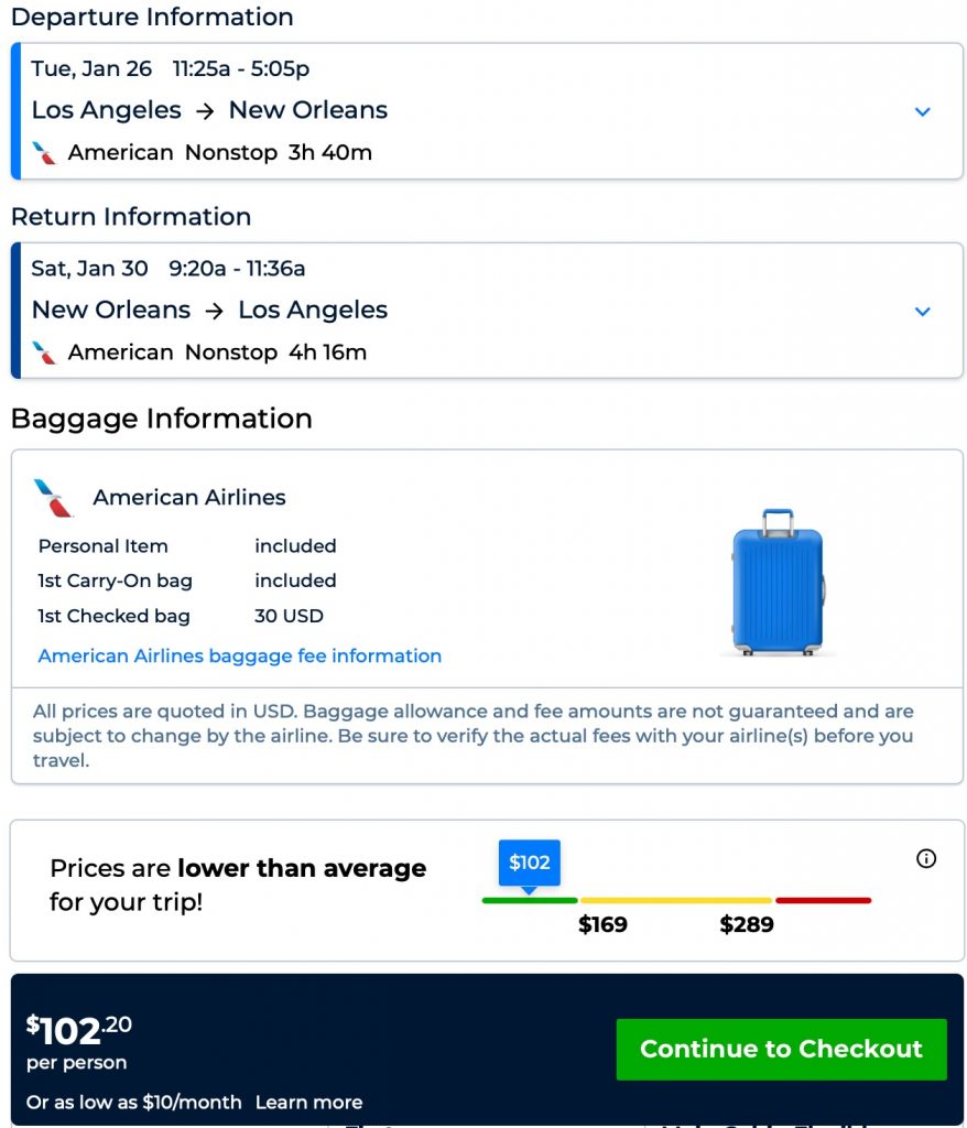 Amazing deal: Los Angeles to New Orleans and v/versa flight round-trip as low as $102.